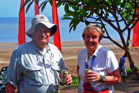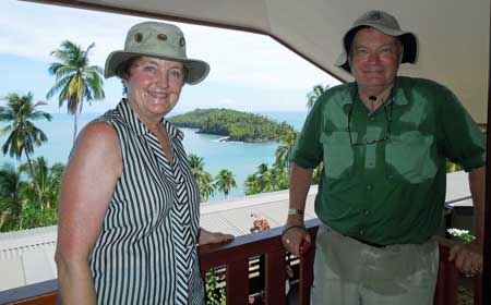 With our Australian traveling friends, Rob & Meg Thomas | On a warm & humid day overlooking Devils Island | ||