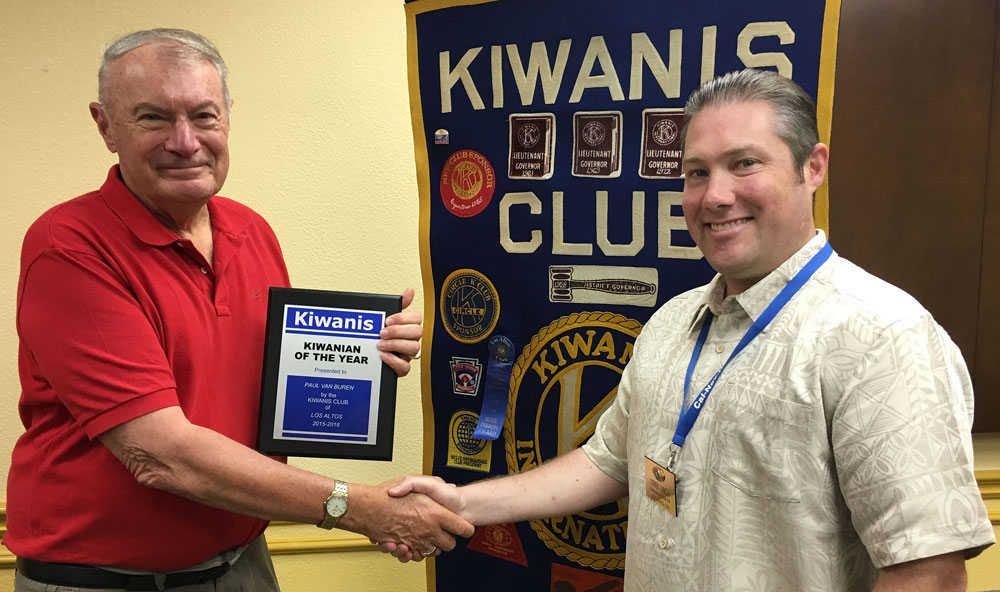Paul was honored by the Los Altos Kiwanis Club as Kiwanian of the Year. He has been a member of Kiwanis since 1972. |